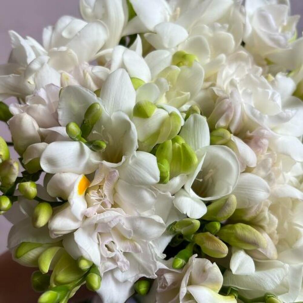 Фрезия – 31 шт.Атласная лента – 1 шт.