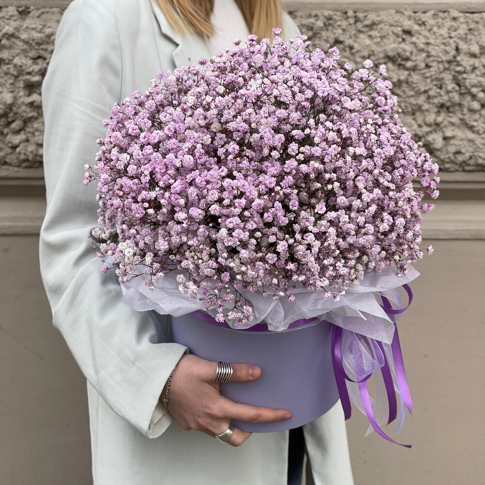 Коробочка с сиреневой гипсофилой Сюрприз