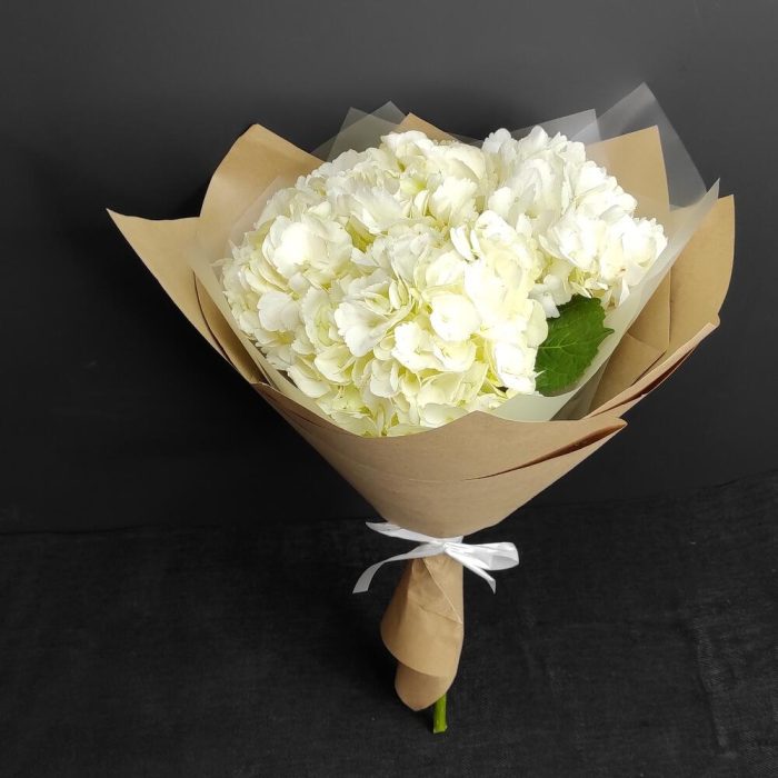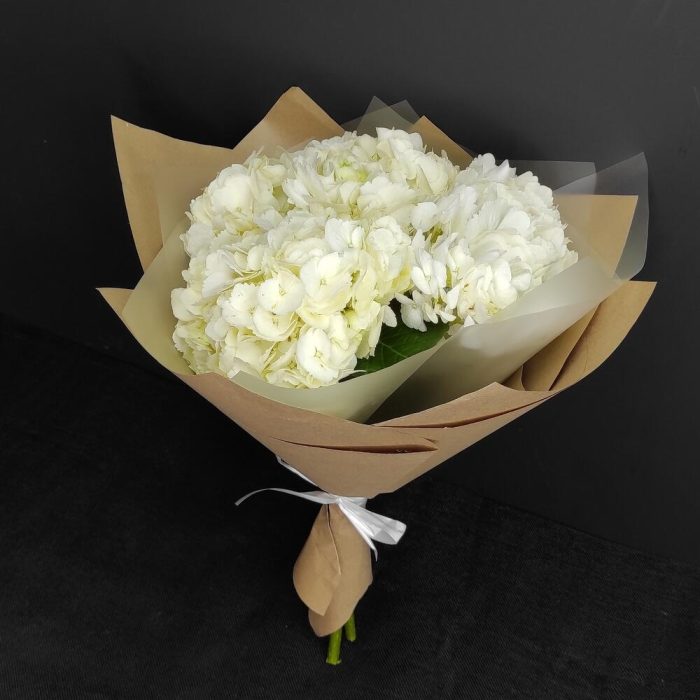 Букет из 3 белых кустовых хризантем в стильной упаковке