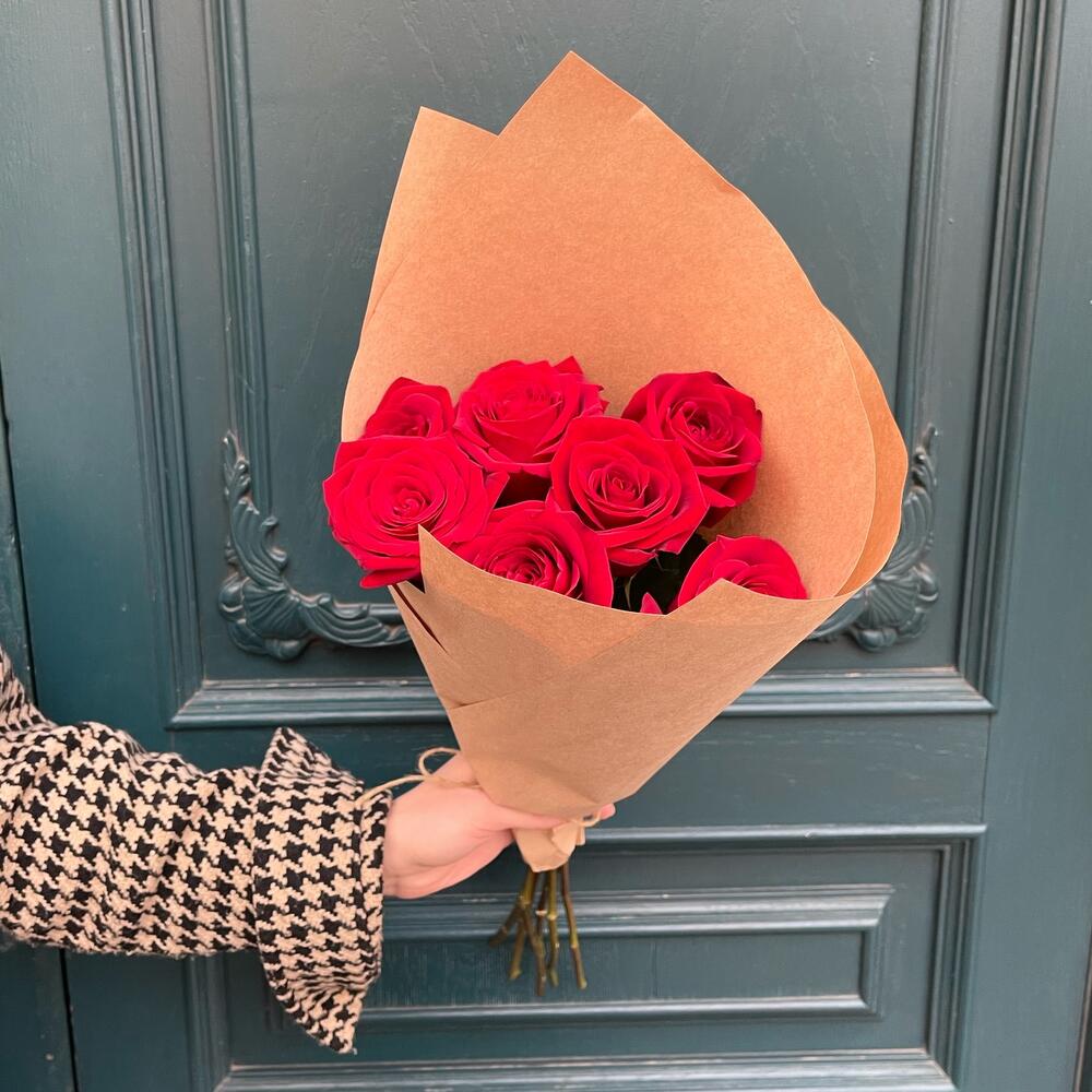 7 красных роз в крафте
