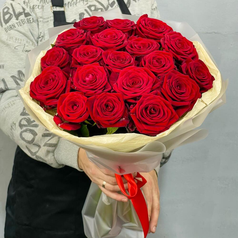 Лента атласная – 1 шт.Роза 70 см – 19 шт.Упаковка дизайнерская – 4 шт.