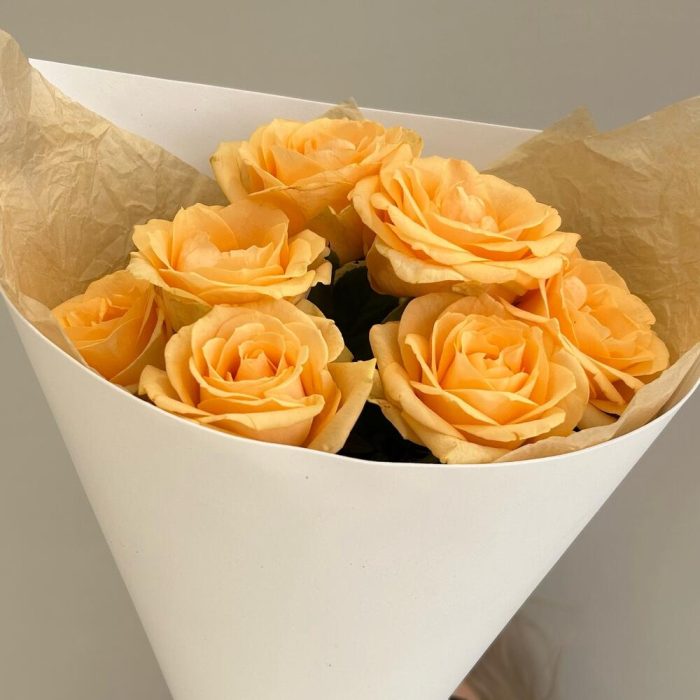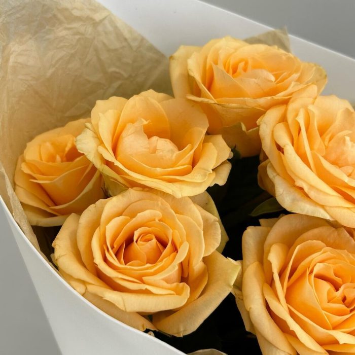 Роза – 7 шт.Лента атласная – 1 шт.Упаковка дизайнерская – 2 шт.