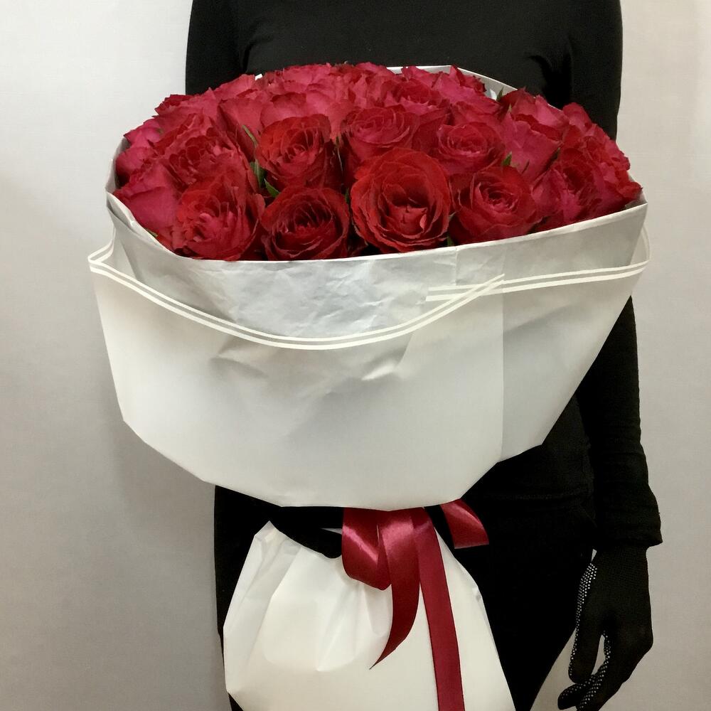 Лента атласная – 1 шт.Тишью – 2 шт.Роза 40 см – 35 шт.Пленка матовая – 2 шт.