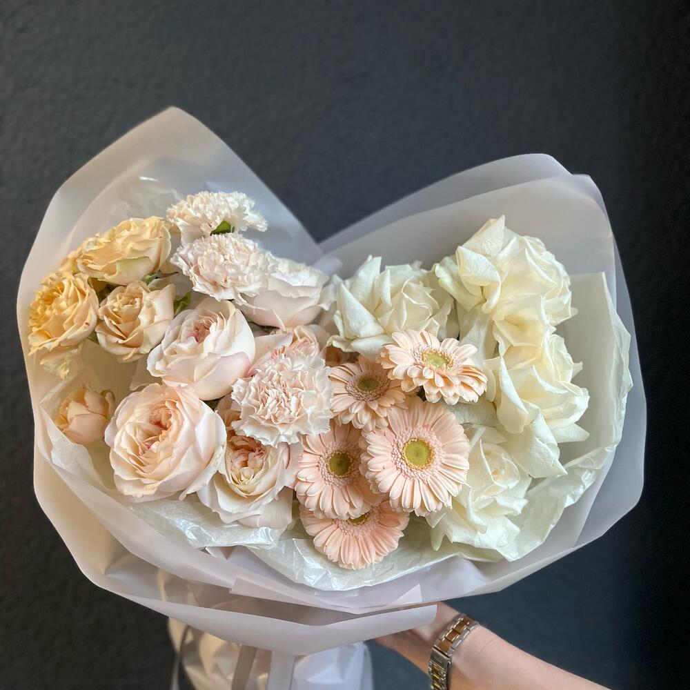 Букет с пионовидными розами и герберами "Нежный"