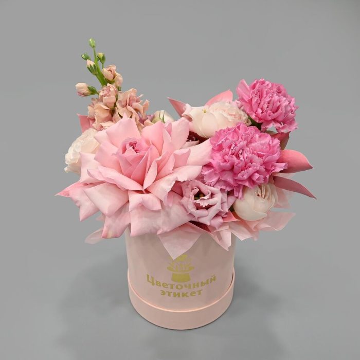 Букет в коробке с ароматной французской розой и маттиоллой