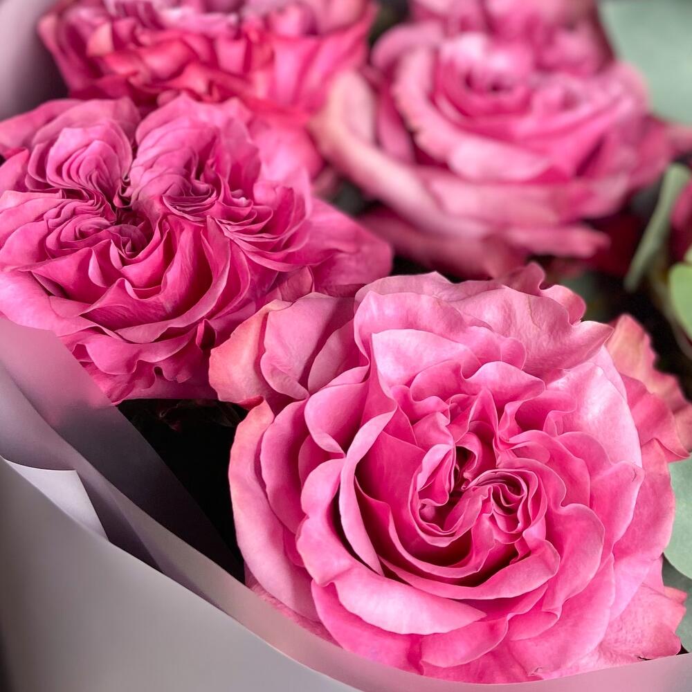 Монобукет с пионовидными розами и эвкалиптом