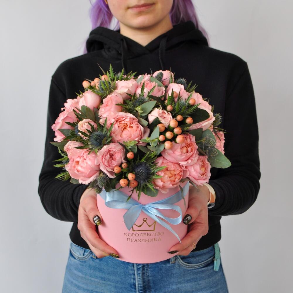 Пионовидные розы в окружении ягод гиперикума, голубые колючки делают этот букет просто волшебным.Как быстро проносится прекрасное лето❤️ радуйте своих любимых яркими летними букетам.Красочная композиция ,прекрасно подойдёт в подарок учителю Такую композицию можно подарить по любому поводу, она станет прекрасным украшением стола, интерьера, красива со всех сторон. Подойдёт в подарок на новоселье, день рождения, юбилей и просто порадовать дорогого человека