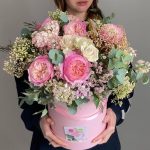 Пионвидные розы в шляпной коробке