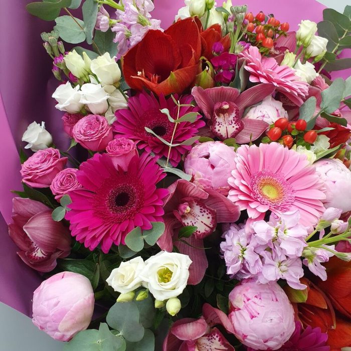 Кустовые розы, Лизиантусы, Пионы, Розы, Хризантемы