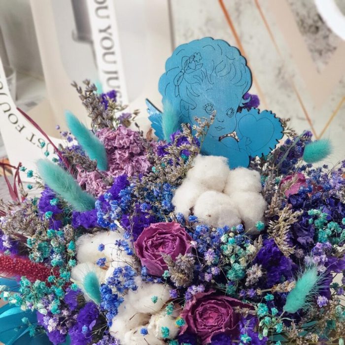 «Лавандовое созвездие» Букет из розы, гвоздики, статица и хлопка